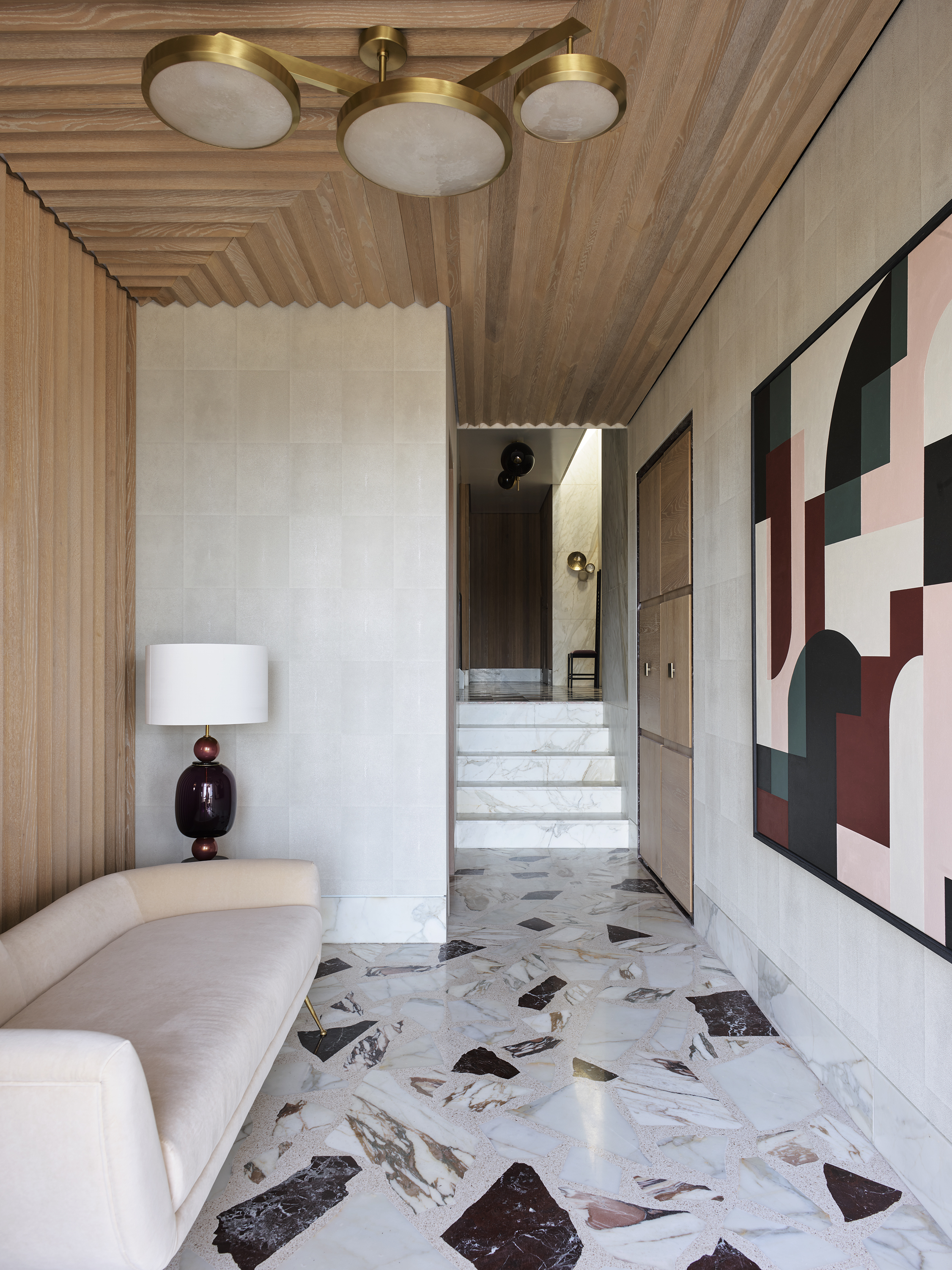 Bouclé sofas, antique brass lighting and marble furniture mix with modern upholstery and abstract artwork in this collection. Shop the style and transform your home with quiet luxury essentials.
